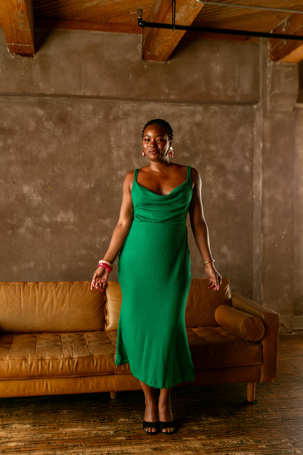 The kelly green is saturated, confident, and alive. It photographs beautifully, commands attention in a room, and transitions seamlessly from daytime intention to evening presence.