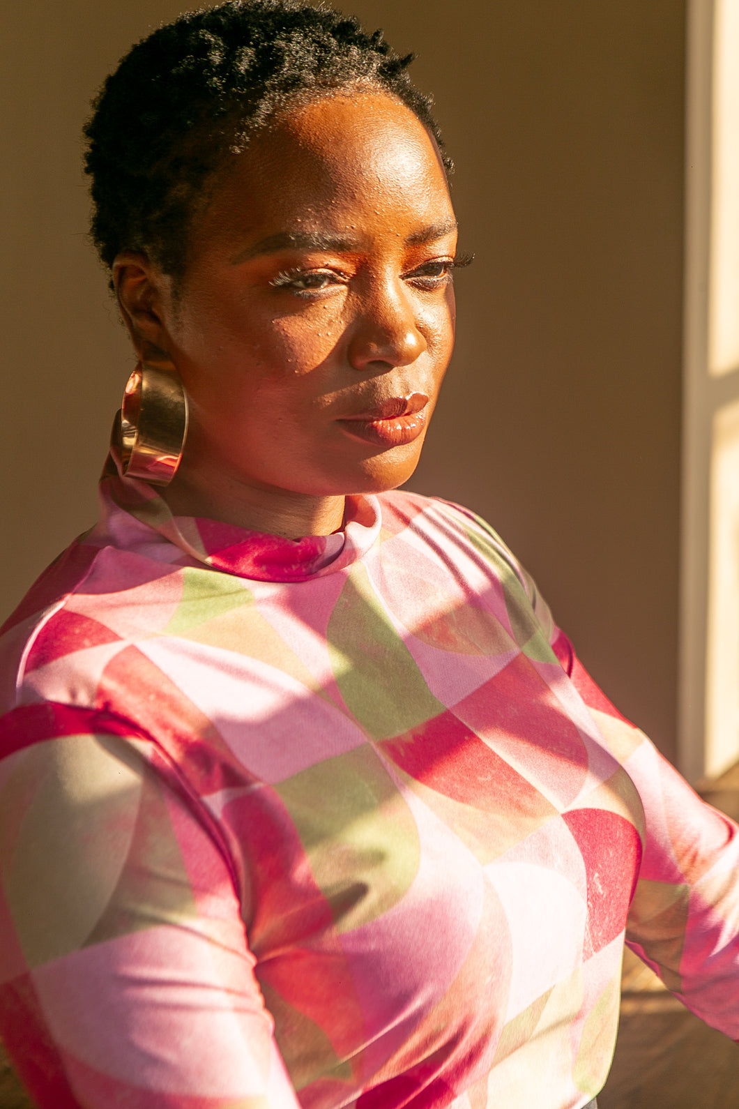 The Pretty Geo Top features a custom geometric print designed exclusively for A Leap of Style by Karissa Rendon. Soft pinks and greens intersect in a modern, art-forward pattern that feels playful without ever losing sophistication.